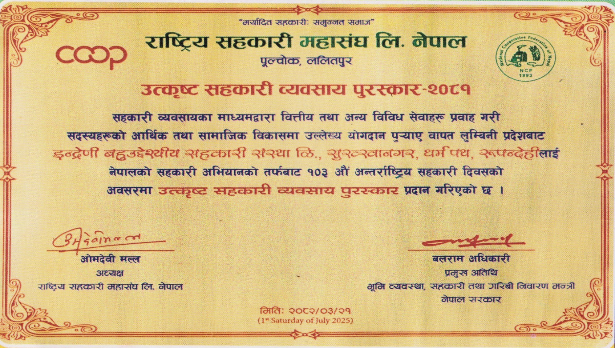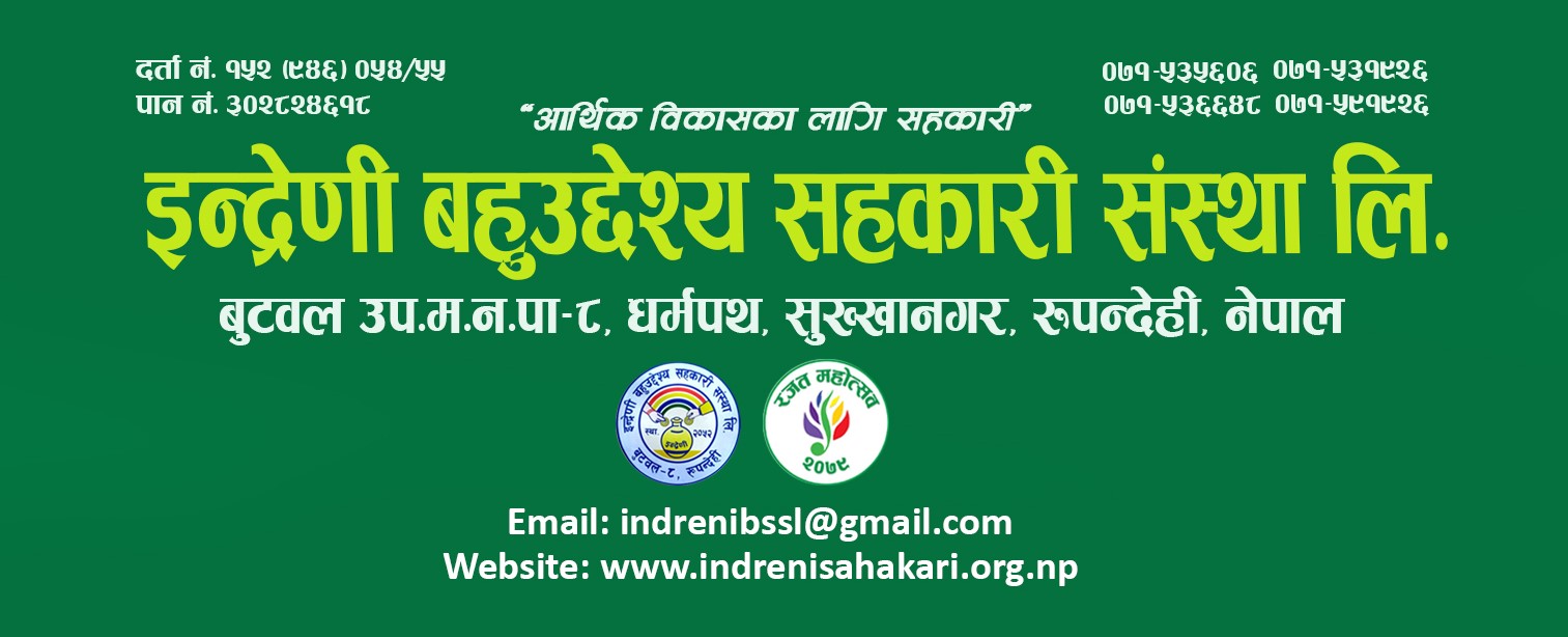 वि.सं. २०५२ सालको चैत्र महिनाको दोस्रो शनिबार देखि एक दिने १५१ जना सदस्यहरुबाट मासिक रु. ४०० ।– जम्मा गर्ने गरी बु.न.पा.–१०, सुख्खानगरमा लुम्बिनी सोसाइटीको नाममा श्री एक बहादुर राना ज्यूको नेतृत्वमा स्थापना भएको यस इन्द्रेणी बहुउद्देश्य सहकारी संस्था लिमिटेड २०५५ साल आषाढ २४ गते श्री भुपाल कुमार श्रेष्ठ ज्यूको नेतृत्वमा सहकारी कार्यालयमा वैधानिकता पाई विभिन्न समूह संचालन गर्दै बालबचत, शेयरसदस्यहरु बिच बैंकिङ कारोबार, मुद्दती निक्षेप संकलन सहित विभिन्न समुहगत बचत संकलन गर्दै आइरहेको छ । जस मध्ये ४००, ५००, ६००, ७००, ८००, १०००, १२००, १५००, २००० र एकमुष्ट ५००००।– का समुहहरु रहेका छन । ती समुहहरुमध्ये ४००, ५००, १०००, १५०० समुहका बचतकर्ताहरुलाई उक्त समुहले आर्जन गरेको ब्याज लाई विजयादशमीमा बचतका रुपमा वितरण गर्दै आएको छ । जुन रकमले विजयादशमीमा शेयर सदस्यहरुलाई धेरै सहयोग पुर्यााएको छ । बचतको अनुपातमा शेयरमा बृदि गर्दै, बचतलाई नियमितता गर्दा संस्थाप्रतिको लगावमा बढि प्रभावकारिता आउछ भन्ने मान्यता अनुसार बचत वितरण गरिरहेको समुहलाई ए...